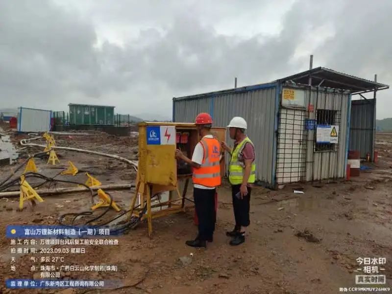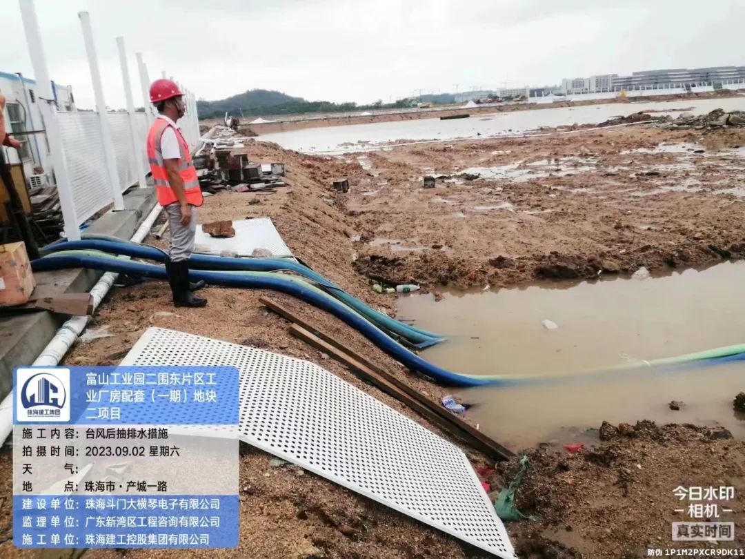 在斗門大橫琴5.0產(chǎn)業(yè)新空間萬鋰新材料(一期)項(xiàng)目現(xiàn)場,開展了臺(tái)風(fēng)后復(fù)工復(fù)產(chǎn)安全大檢查,現(xiàn)場組織排水、圍擋修復(fù)各項(xiàng)工作。
