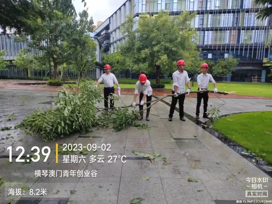 大橫琴琴建公司第一時(shí)間組織人員開展搶險(xiǎn)工作。包括對建筑物進(jìn)行全面檢查,確保建筑物結(jié)構(gòu)安全。同時(shí),集中力量對各項(xiàng)目受損樹木進(jìn)行修復(fù)和清理,利用工具和機(jī)械設(shè)備積極清理影響道路、橋梁正常通行的傾倒樹木和雜物,針對重點(diǎn)區(qū)域迅速制定方案,盡快恢復(fù)正常的生產(chǎn)生活秩序。