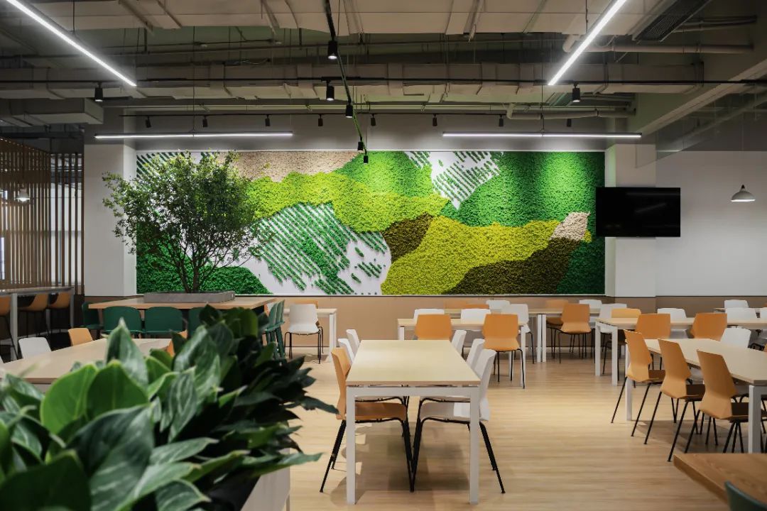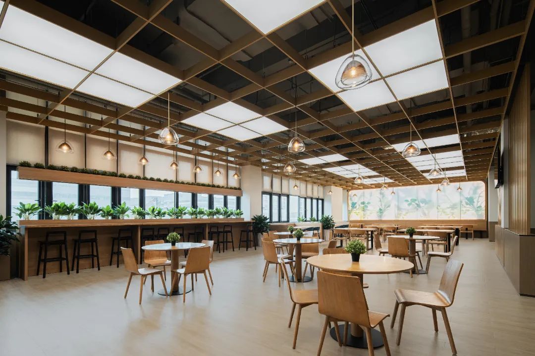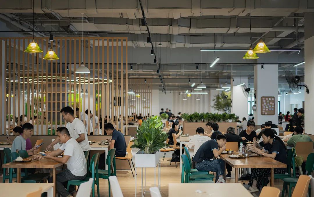 走進(jìn)“廠其林”食堂,仿佛將一片小森林搬了進(jìn)來。