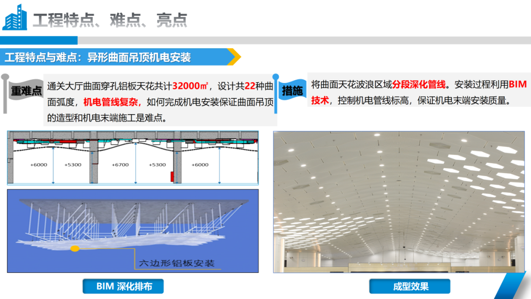 本次獲得“2023-2024年度中國安裝工程優(yōu)質(zhì)獎(中國安裝之星)”關(guān)鍵點在于,橫琴口岸及綜合交通樞紐工程由A區(qū)B區(qū)、C區(qū)主體建筑及南北側(cè)交通平臺組成,機電施工內(nèi)容包括建筑給排水及采暖、通風(fēng)與空調(diào)、建筑電氣三個分部工程。作為一個大體量機電工程,項目機電系統(tǒng)多、綜合管線復(fù)雜。在項目建設(shè)過程中,承建團隊運用BIM技術(shù),對圖紙進行深化設(shè)計、對管線綜合排布并進行碰撞檢查,提前發(fā)現(xiàn)并解決管道沖突問題,以達到機電管線安裝排布整齊、間距合理,確保了本次順利“摘星”。