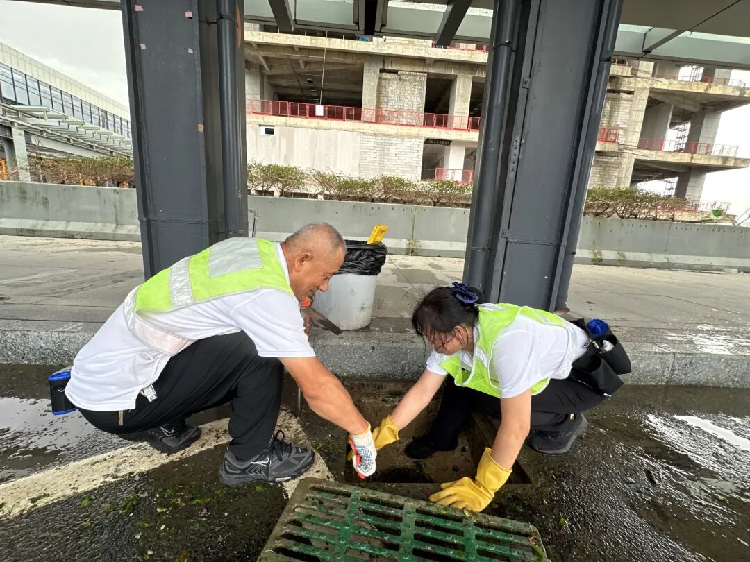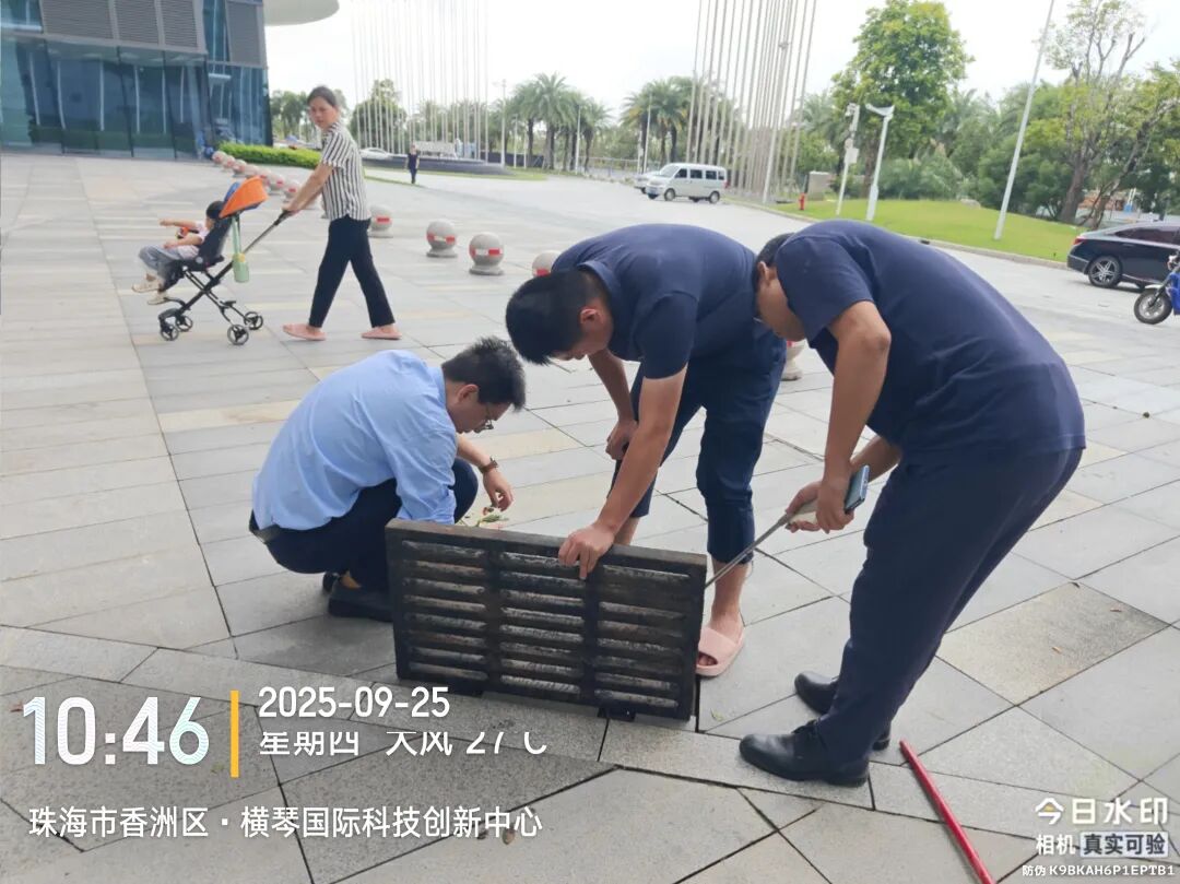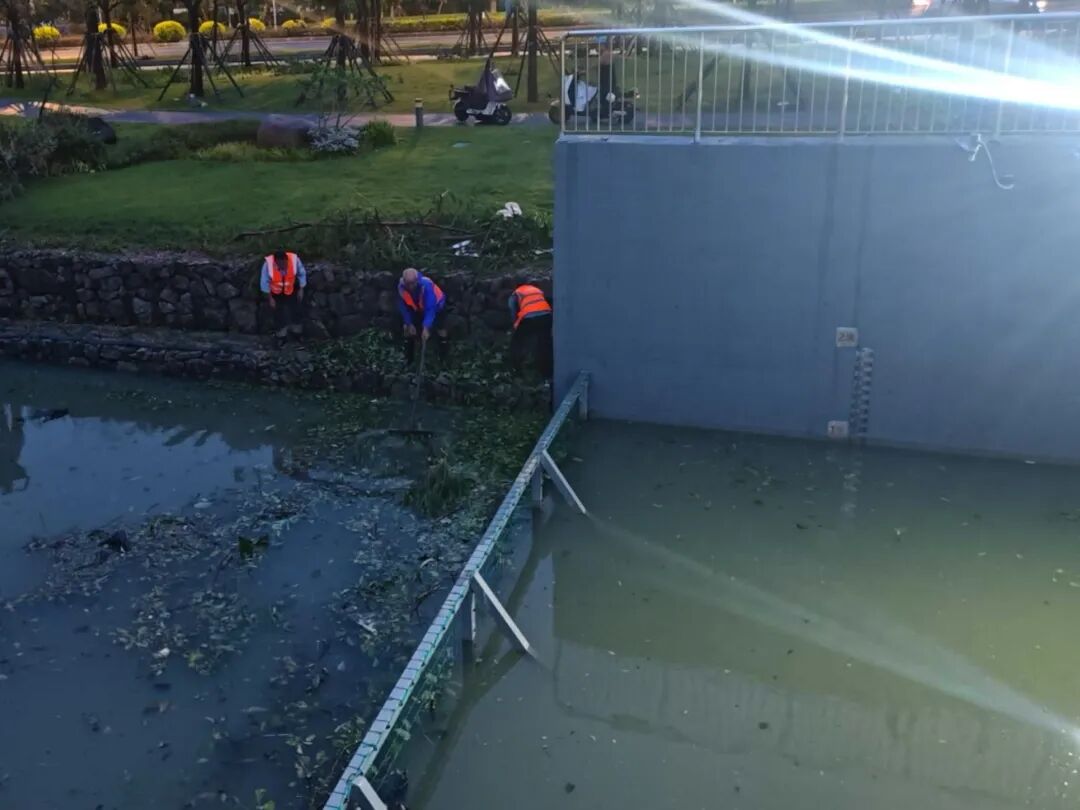 臺風(fēng)期間,受風(fēng)暴潮影響,橫琴天沐河水位上漲,珠光集團(tuán)迅速組織搶險(xiǎn)力量,通過加筑沙袋有效阻止海水倒灌進(jìn)天沐河,同步安全轉(zhuǎn)移設(shè)備設(shè)施,并緊急安裝抽水設(shè)備清理積水,避免變電房被水浸泡。臺風(fēng)過境后,搶險(xiǎn)隊(duì)伍立即投入后續(xù)清理工作,第一時(shí)間清理泵站進(jìn)水口垃圾,保障泵站排水通暢,降低村渠水位;清理排水口垃圾,保障土渠排水暢通;并全力協(xié)助合作區(qū)市政管理署,清理倒塌的邊境圍網(wǎng)。