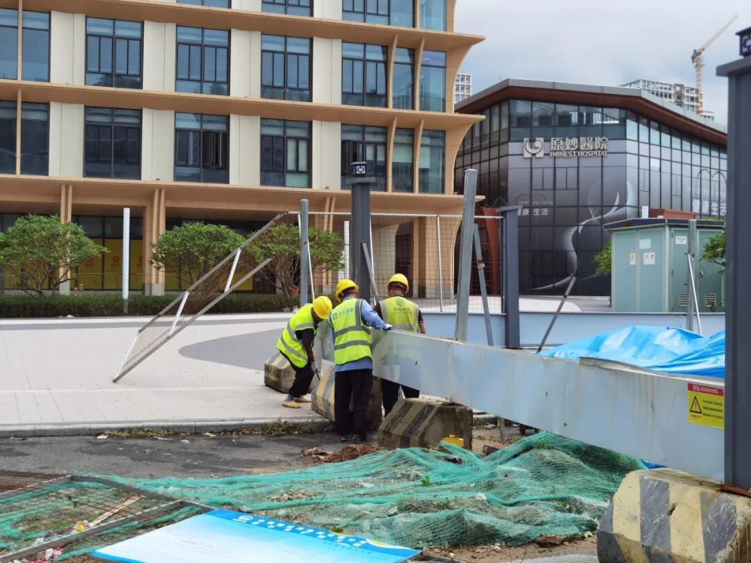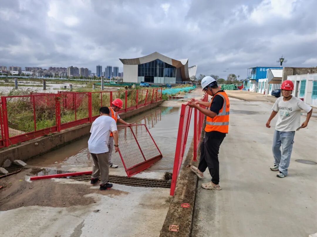臺風(fēng)過境后,珠光集團(tuán)98個(gè)在建項(xiàng)目迅速開展復(fù)工復(fù)產(chǎn)準(zhǔn)備工作。各單位有序組織項(xiàng)目一線管理人員和工人進(jìn)行災(zāi)后進(jìn)場前安全教育培訓(xùn)后返回工地,迅速開展清理雜物、圍擋維修、恢復(fù)受損設(shè)施等工作,對辦公區(qū)和生活區(qū)、臨時(shí)設(shè)施、現(xiàn)場臨水臨電系統(tǒng)等進(jìn)行全面安全排查,對大型設(shè)備、腳手架等進(jìn)行專項(xiàng)檢查、檢修,統(tǒng)計(jì)災(zāi)后受災(zāi)情況上報(bào)集團(tuán)。