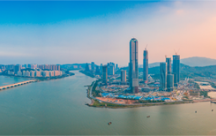 藍(lán)色代表橫琴新區(qū)智能島、開放島的定位,綠色代表生態(tài)島、活力島的定位。中間連接的部分勾勒出“橫琴”的首字母H